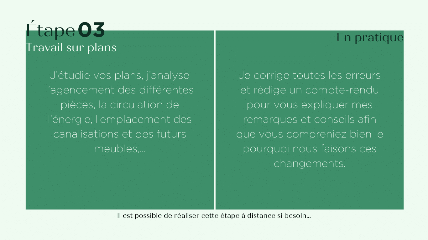 Je suis formée en Neuro-architecture, en révélation d’intérieur (comment agencer les pièces et distribuer les espaces pour coller aux habitudes de la famille), en psychologie de l’habitat et en Feng Shui. J’utilise tous ces outils pour relire vos plans de construction / de rénovation.
